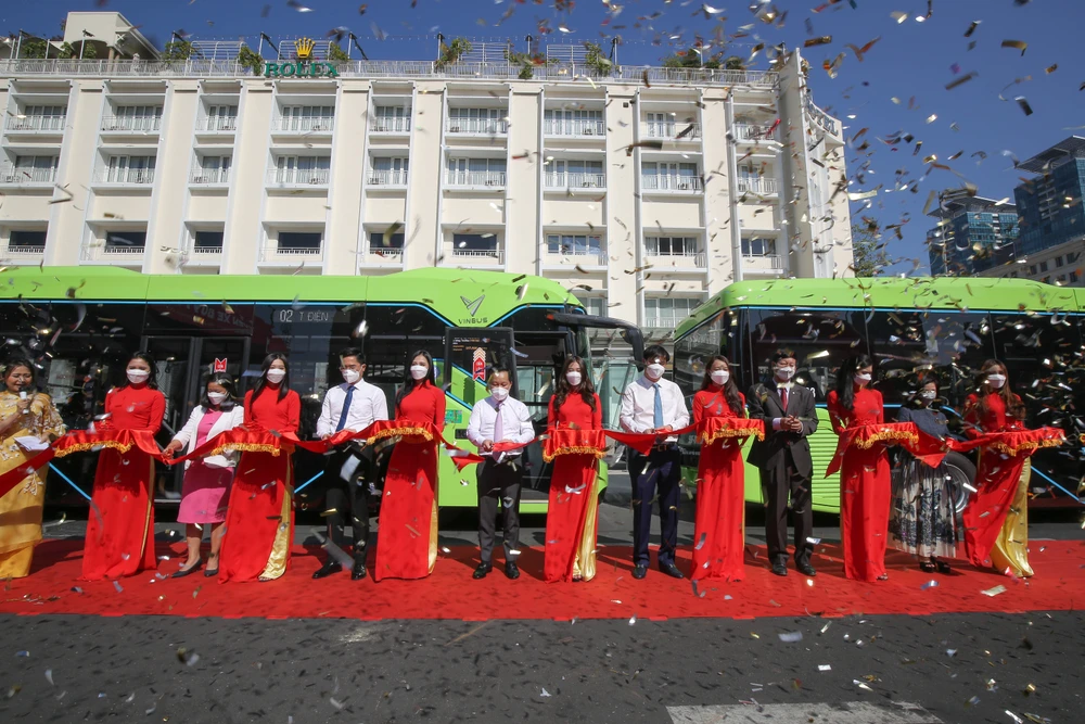 Xe buýt điện VinBus chính thức ra mắt ở TP.HCM.