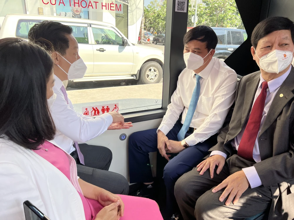 Lãnh đạo TP trải nghiệm xe buýt VinBus. Ảnh: ĐT.