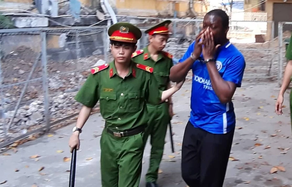 Bị cáo Chime Obiora Walter được dẫn giải về trại giam sau phiên tòa. Ảnh: HOÀNG YẾN