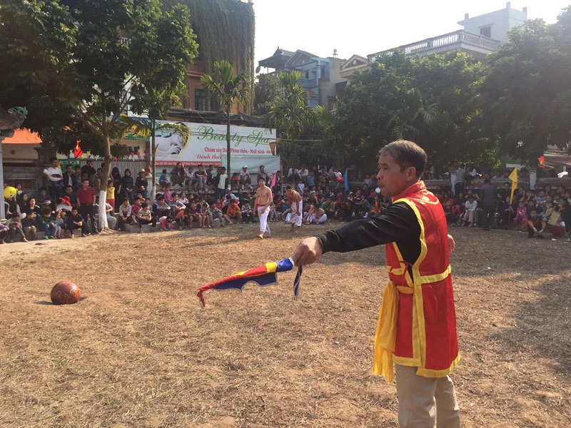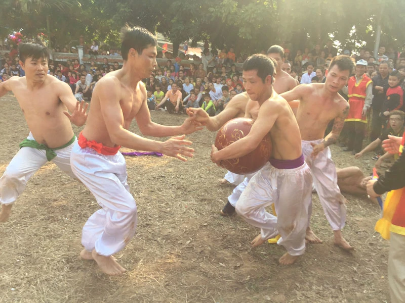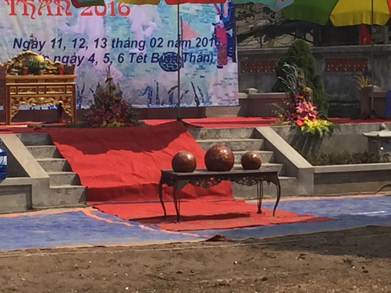 Quả cầu làm bằng gỗ mít được sơn son nặng đến 25kg, nhưng cũng có những quả nhỏ hơn cho trẻ em hoặc người cao tuổi.