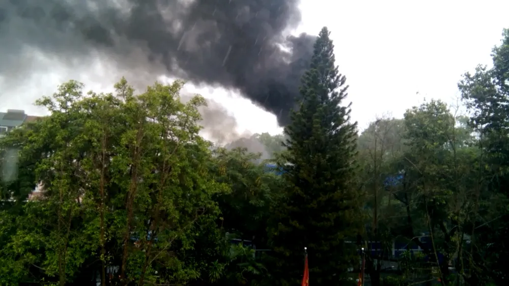 Trạm biến áp 110/15 kV phát nổ bốc cháy trong cơn mưa chiều 20-9.