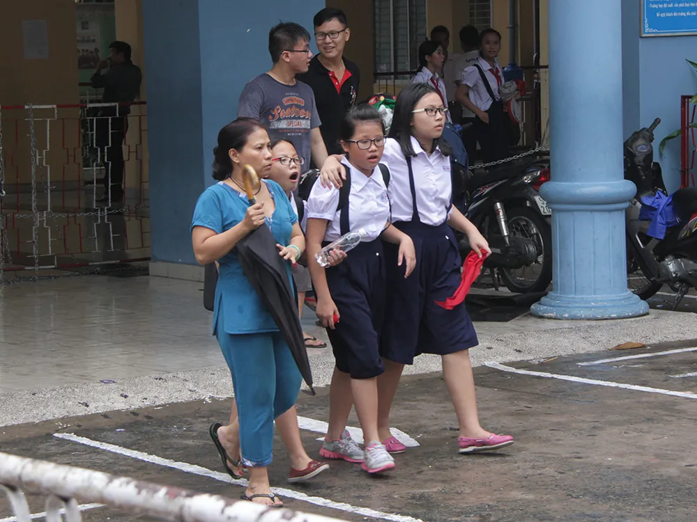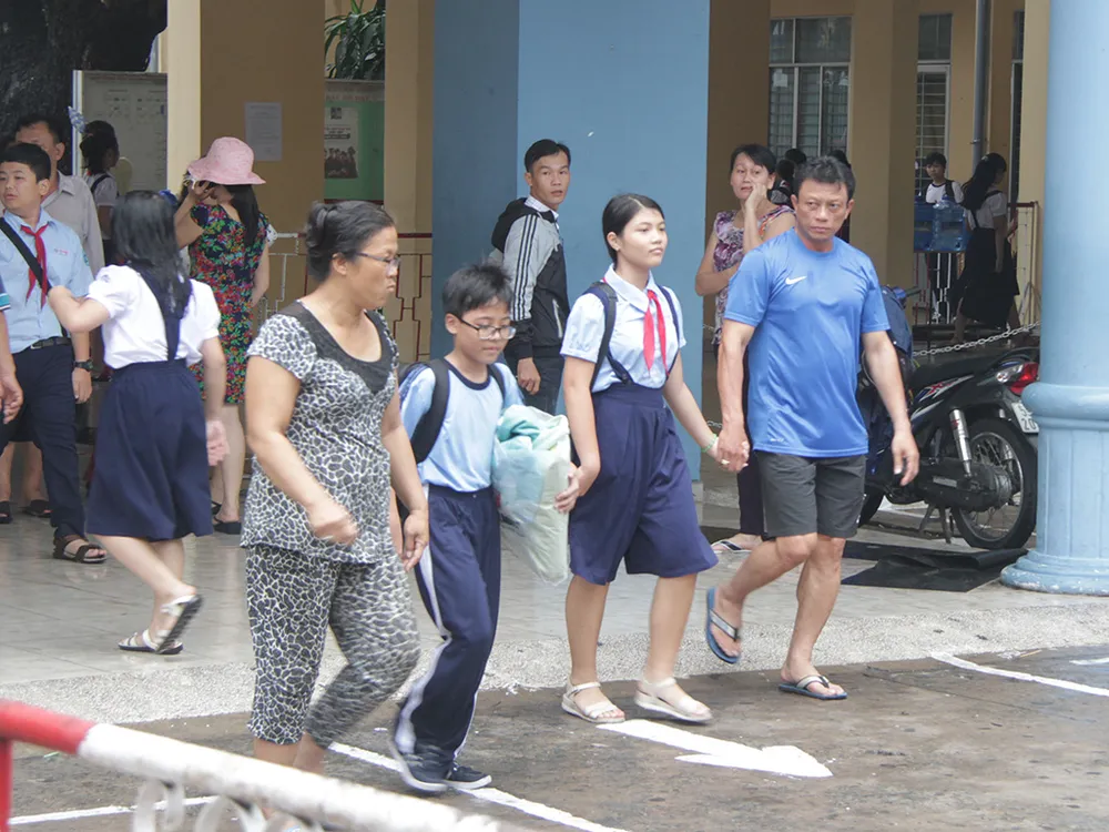 Nhiều phụ huynh đến trường đưa các em học sinh về nhà.