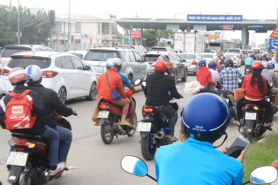 Trạm thu phí cầu Rạch Miễu trên quốc lộ 60. Ảnh: ĐH