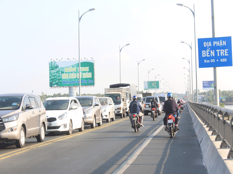 Nghiêm trọng nhất ở các điểm cầu trên QL1 đoạn qua huyện Cái Bè, Cai Lậy, Châu Thành như: cầy Mỹ Đức Tây, Rạch Miễu, Cổ Cò, An Cư, cầu Rượu… ô tô tải, xe khách, container… nối đuôi nhau dừng tại chỗ gần 30 phút mới qua được cầu.