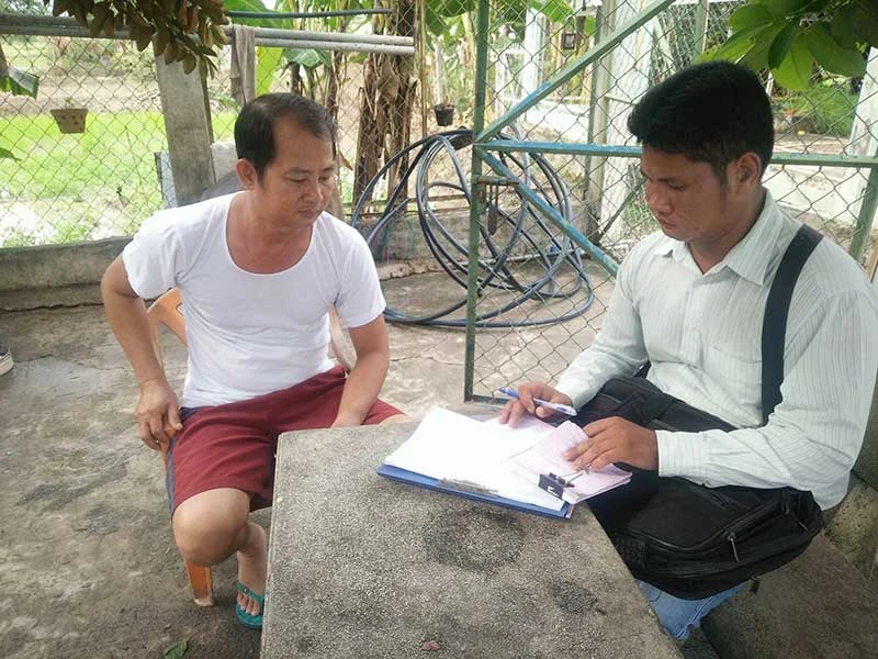 Nhân viên Trạm cấp nước Đa Phước I(phải)đang tính lại tiền nước cho một hộ dân ở ấp 2, xã Đa Phước, huyện Bình Chánh. Ảnh: ĐÀO TRANG