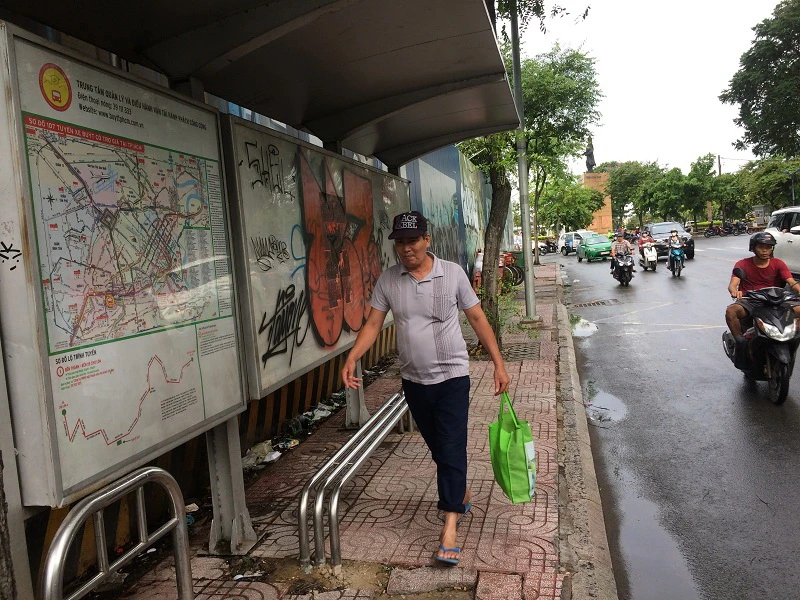 Trạm dừng trên đường Nguyễn Hữu Cảnh, quận Bình Thạnh bị vẽ bậy khiến nhiều người bức xúc.