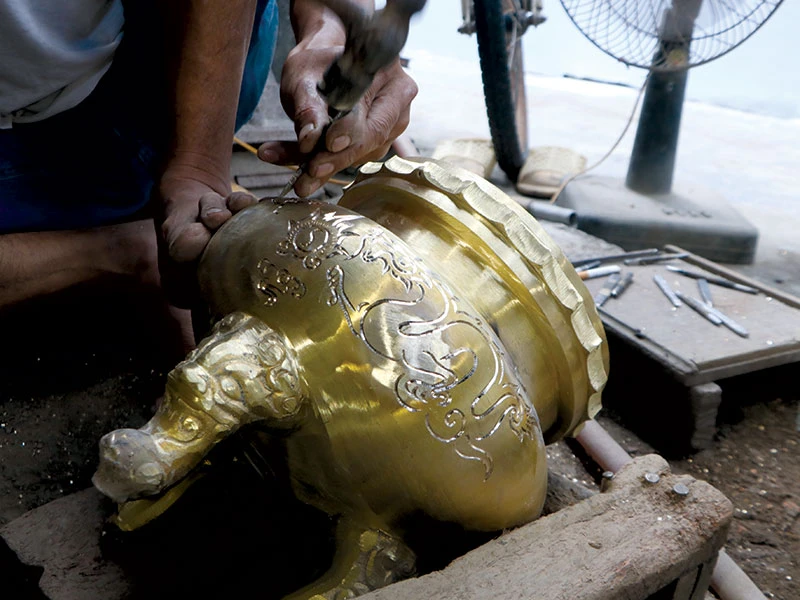 Nói thì đơn giản vậy, chứ khi làm là cả một quá trình. Người thợ ngoài việc có tay nghề thì cũng cần có sức khỏe và chịu được áp lực về thời gian vì có những công đoạn phải làm cả ban đêm. Để chế tác ra lư đồng đẹp, sắc sảo thì ngoài việc áp dụng các phương pháp chung còn có cả bí quyết riêng.