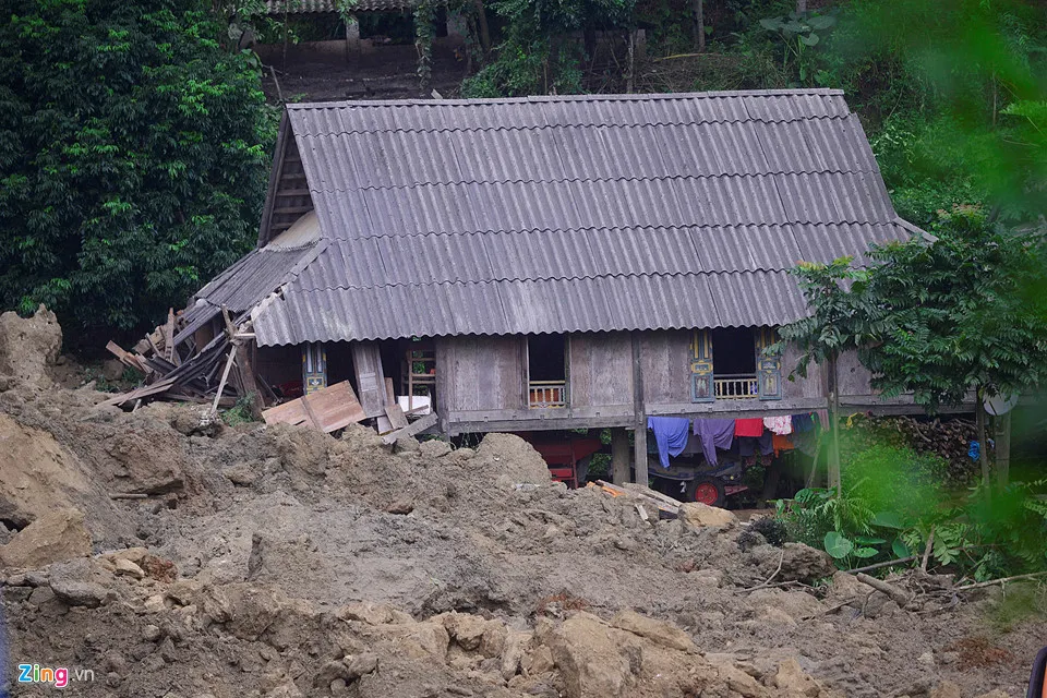 Dòng thác chảy từ trên đồi xuống vẫn còn rất mạnh tại nơi bị sạt lở. Thông tin từ các lực lượng đang cứu hộ cứu nạn tại hiện trường cho biết các thành viên của 4 gia đình bị nạn trong đêm khi họ đang ngủ.