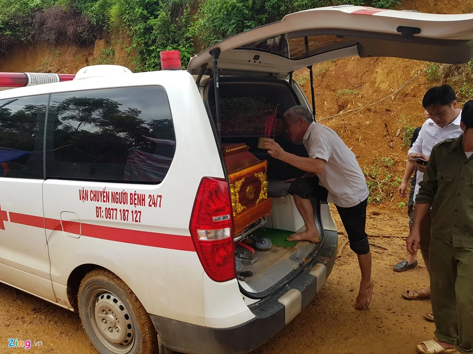 Chuyển thi thể nạn nhân lên xe. Hiện, lực lượng tìm kiếm cứu nạn đã tìm được 8 người, còn 10 người bị vùi lấp.