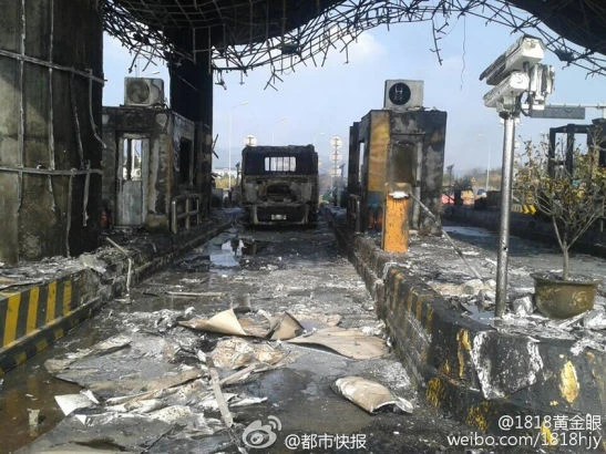 Trạm thu phí cao tốc Trung Quốc cháy rụi
