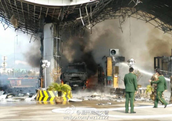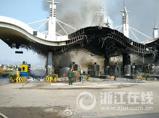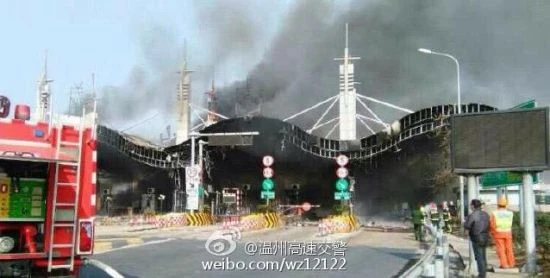(PLO) - Theo trang mạng Sina, lúc 11g30 sáng ngày 16-1 (giờ địa phương), một trạm thu phí đường cao tốc tại Thường Sơn, tỉnh Chiết Giang (Trung Quốc) đã bất ngờ bốc cháy. Đám cháy được dập tắt vào lúc 12g30. Hiện chưa có thông tin về nguyên nhân và số thương vong.