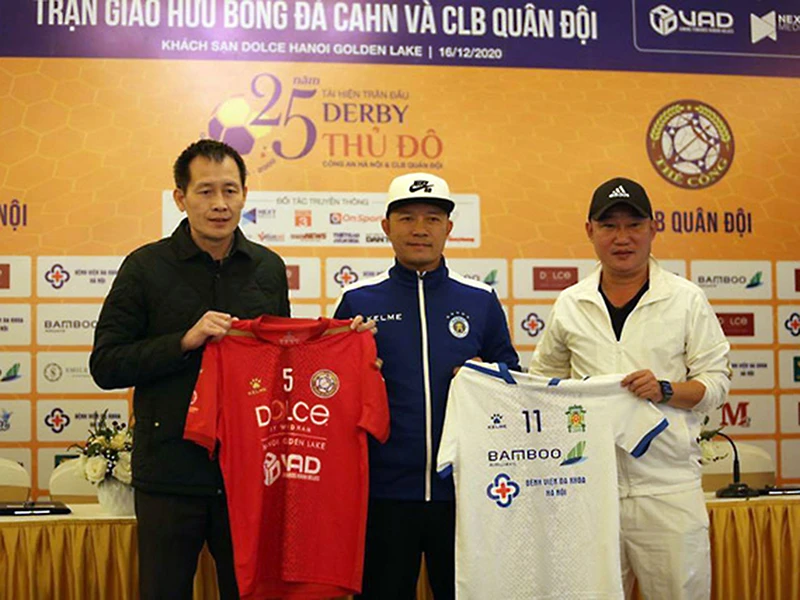 Sáng 16-12, LĐBĐ Hà Nội đã thực hiện lễ công bố và ký kết tài trợ trận giao hữu “25 năm tái hiện trận đấu derby thủ đô giữa CLB Quân đội và Công an Hà Nội”.