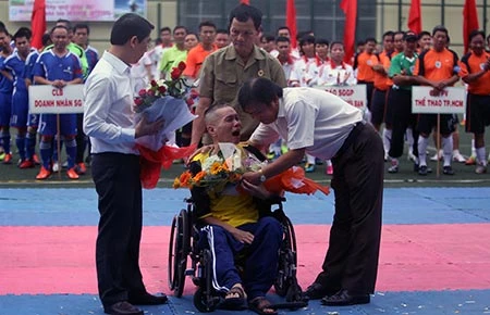 Sáng qua (29-8), rất đông anh em, bạn bè thân hữu, đồng nghiệp và làng thể thao đã gặp gỡ nhau bên chiếc xe lăn của nhà báo Đỗ Minh Hùng.