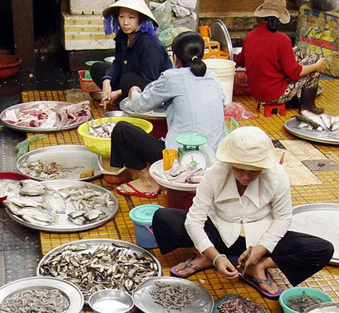 Người tiêu dùng khó nhận biết được thủy sản bán ngoài chợ có nhiễm kháng sinh hay không. Ảnh: HTD