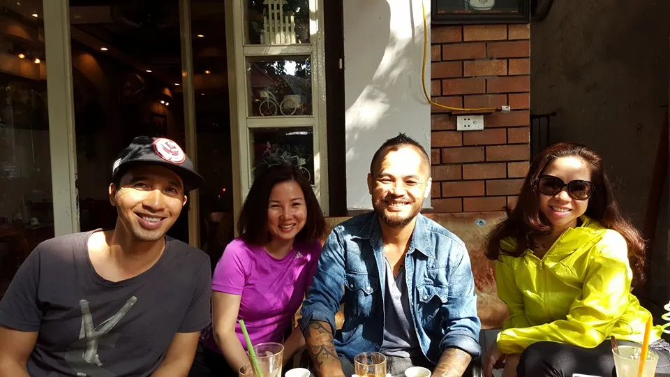 Anh nói: “Sáng Chủ nhật đẹp, tạm gác chuyện sụt mất béng 8 kg sau mổ mà đi trà đá, cà phê với bạn bè đổi không khí một chút thì còn gì bằng. Thư thái, vui”.