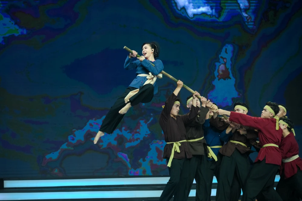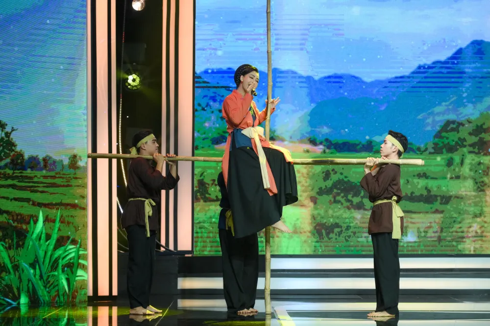 Đặc biệt, nữ ca sĩ còn gây bất ngờ và thót tim cho ban giám khảo khi có nhiều pha trình diễn mạo hiểm nhưng không kém phần đẹp mắt như đu người trên những cây sào chông chênh để tạo nên hiệu ứng chân thật cho tiết mục dự thi.