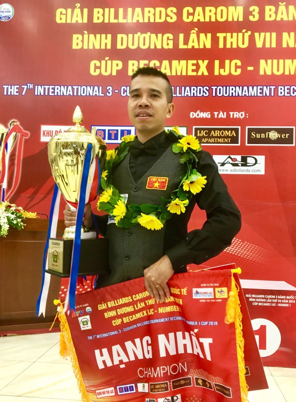 Cơ thủ Trần Quyết Chiến lần thứ hai đăng quang chức vô địch trong năm 2018. Ảnh: MAI VĂN
