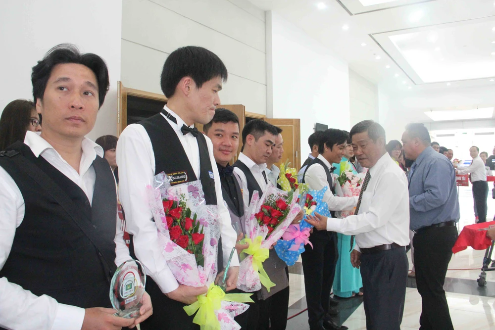 Các cơ thủ nhận hoa chúc mừng từ BTC. Ảnh: THIÊN ÂN