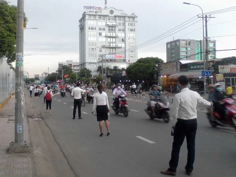 Tình trạng tương tự cũng từng diễn ra trên đoạn đầu đường Phan Huy Ích (quận Gò Vấp), đường Nguyễn Hữu Thọ (quận 7) với một số doanh nghiệp chào bán căn hộ… Các nhân viên tranh thủ giờ tan tầm đông người qua lại để giới thiệu sản phẩm.