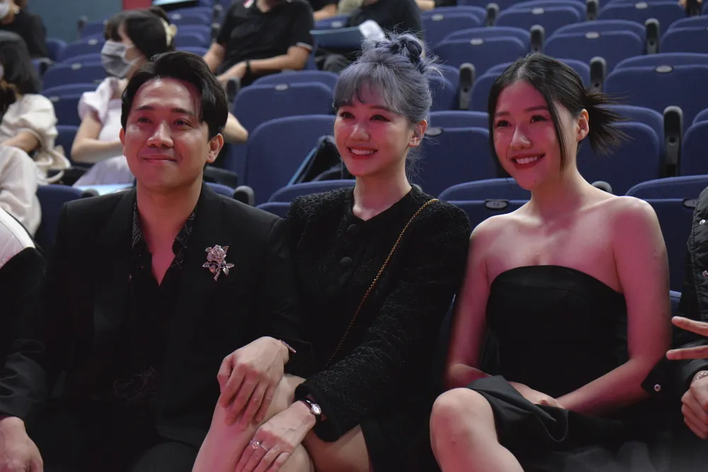 Trấn Thành bên bà xã và em gái. Ảnh: NGUYỄN TRÀ