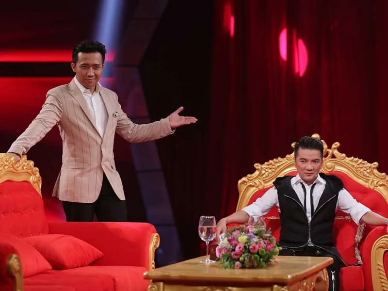 MC Trấn Thành và ca sĩ Đàm Vĩnh Hưng trong chương trình Sau ánh hào quang tập 3: Đàm Vĩnh Hưng - Nước mắt ngai vàng sẽ phát sóng vào tối 16-10 trên HTV7. Ảnh: ĐÔNG TÂY PROMOTION
