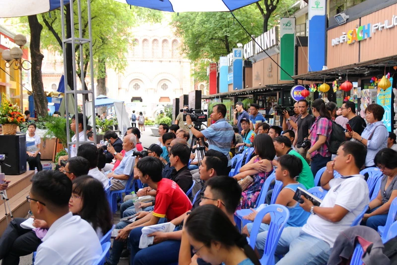 Rất đông người hâm mộ đã đến tham dự và trò chuyện sôi nổi về bóng đá Việt trong buổi ra mắt “Trần trụi bóng đá Việt”.