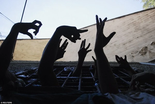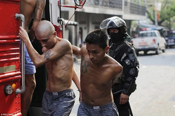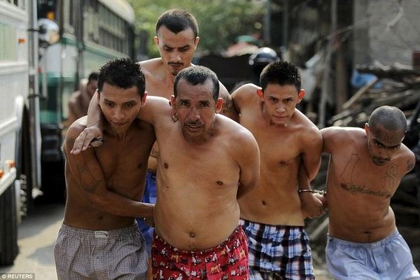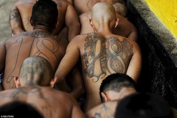 Các thành viên của Barrio 18 (Băng đảng khu phố 18) trong trại giam ở Izalco, El Savaldor.