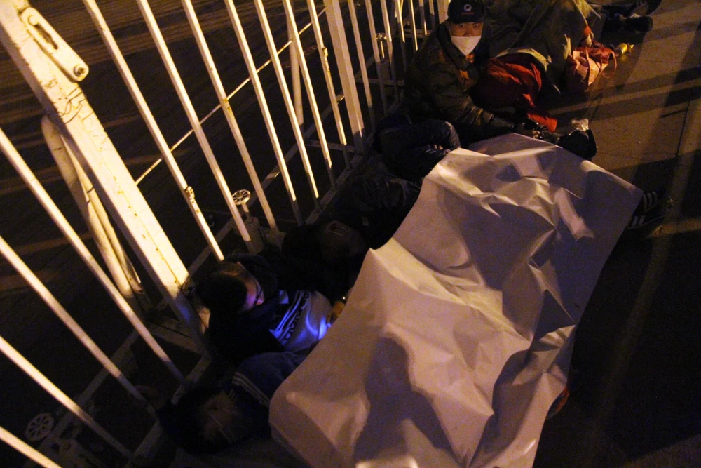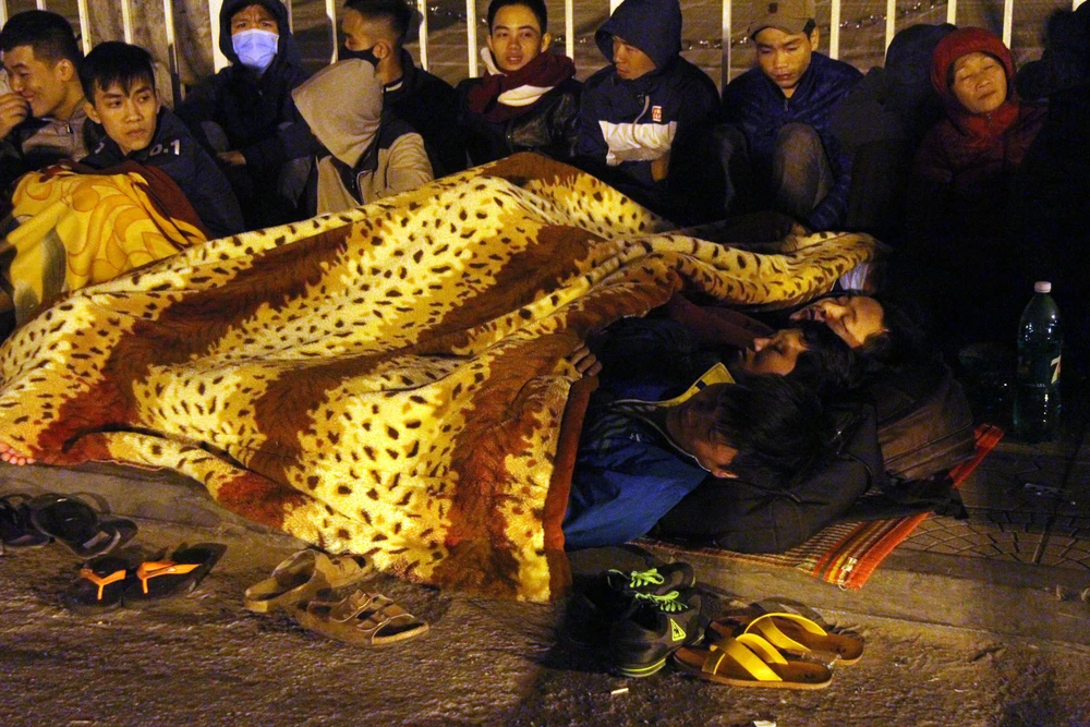 Nhiều người đã chuẩn bị chăn, chiếu sẵn từ ở nhà đến chống cái lạnh