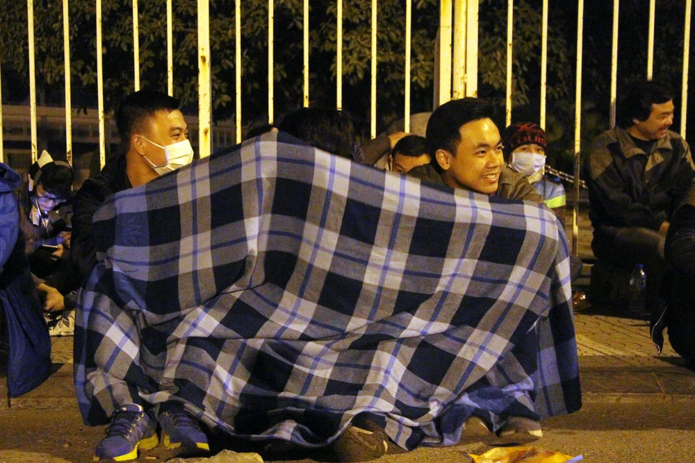 Nhiều người co ro bên chiếc áo khoác mỏng... Một bạn nam tên Điện, quê ở Vĩnh Phúc chia sẻ, mình xuống Hà Nội từ chiều ngày hôm qua...