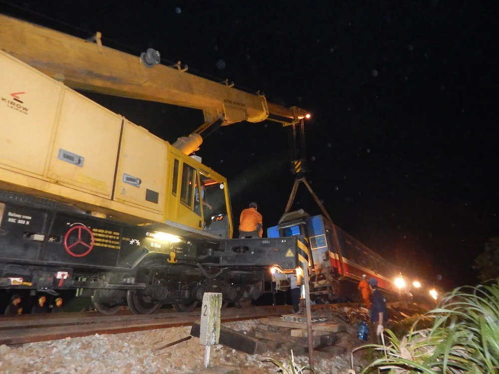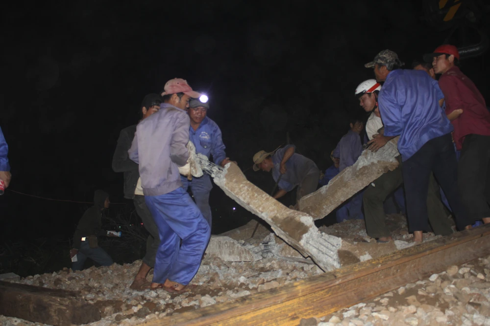 Ước tính khoảng 200 công nhân ngành đường sắt đã có mặt ở hiện trường, khẩn trương khắc phục phần đường ray bị hư hỏng.