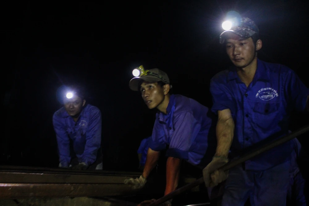 Đến 2 giờ sáng ngày 21-2, nhân viên đường sắt vẫn đang khẩn trương.