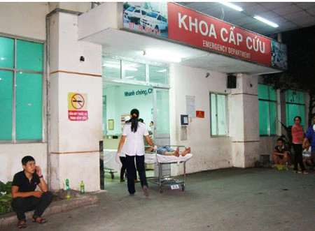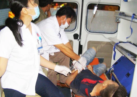 Người bị nạn được chuyển tới khoa cấp cứu của bệnh viện để xử lý vết thương. Ảnh: TRẦN NGỌC