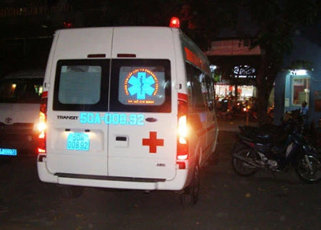 Xe cấp cứu lao ra cổng Trung tâm Cấp cứu 115 TP.HCM để tới hiện trường tai nạn. Ảnh: TRẦN NGỌC