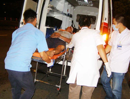 Đưa người bị nạn lên xe cấp cứu để chuyển tới bệnh viện. Ảnh: TRẦN NGỌC