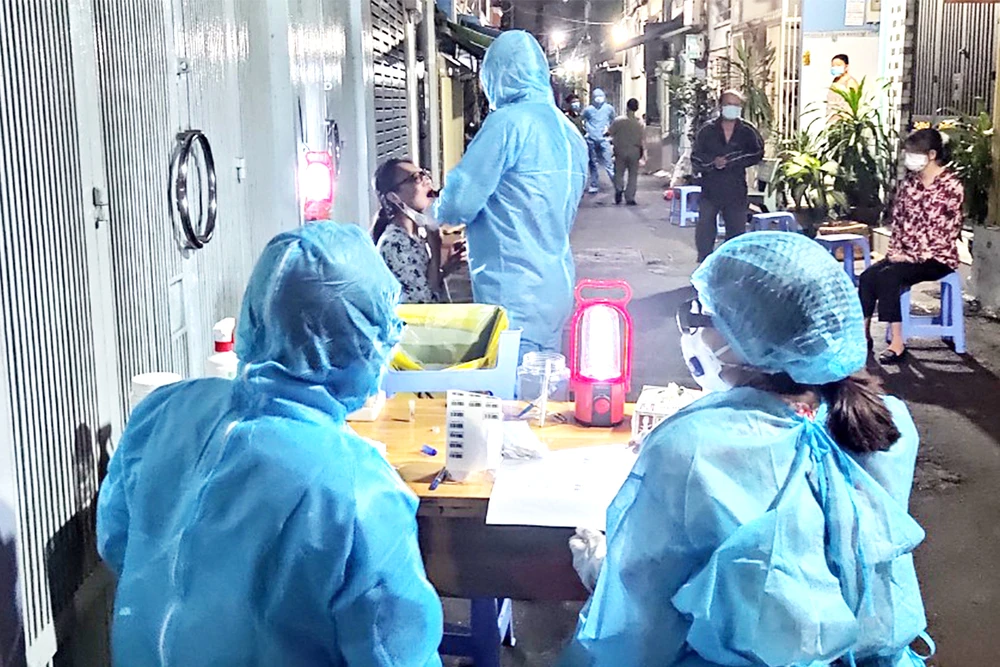 Những người thuộc diện lấy mẫu xét nghiệm SARS-CoV-2 trên địa bàn quận 6 khá đông (611 mẫu). Thế nhưng đâu ai biết rằng chỉ có ba nhân viên y tế thức xuyên đêm để làm việc này.