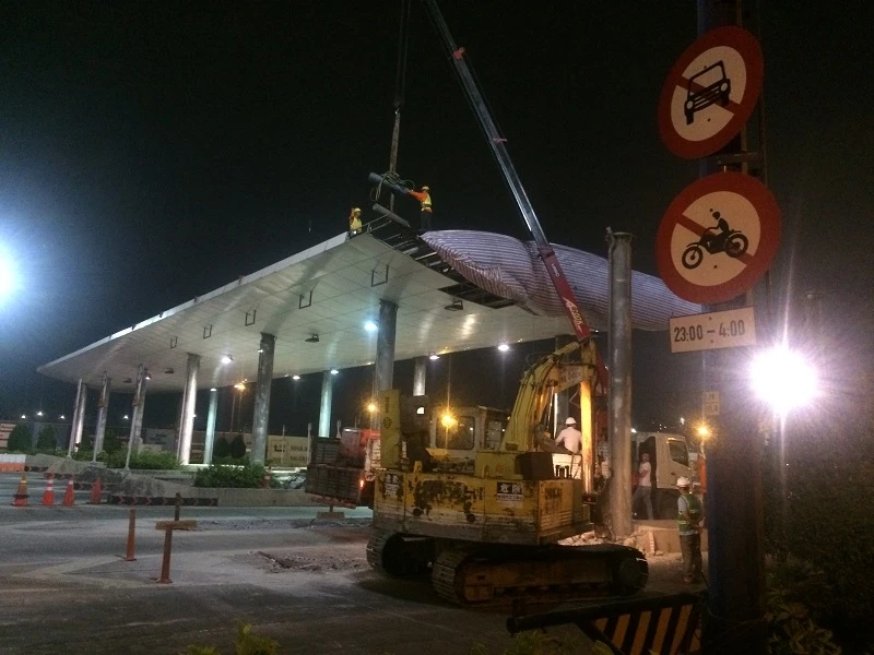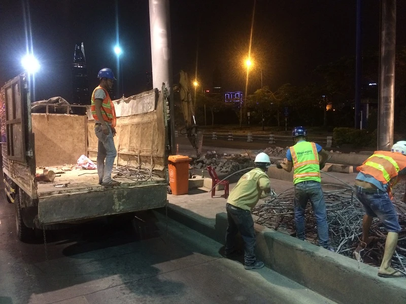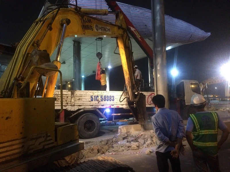 Khuya 30, rạng sáng 31-3, các công nhân bắt đầu tiến hành tháo dỡ trạm thu phí Thủ Thiêm.
