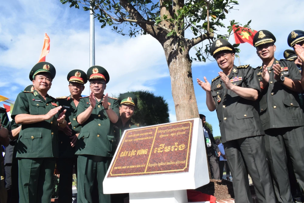 Ngay sau lễ chào cột mốc chủ quyền và chứng kiến tuần tra chung biên giới, đại biểu hai nước Việt Nam - Campuchia đã tiến hành trồng cây hữu nghị tại khu vực cửa khẩu quốc tế Tịnh Biên.