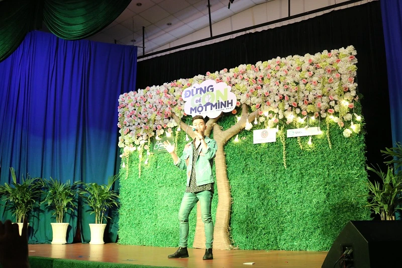 Ali Hoàng Dương, quán quân The Voice 2017 mở đầu chương trình bằng bài hát Đừng để con một mình, ca khúc chính của dự án mà anh từng thể hiện trong đêm chung kết 1 The Voice 2017. ẢNH: THANH TUYỀN.