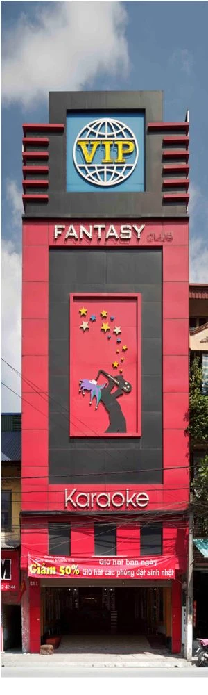 Một quán karaoke mà toàn bộ mặt tiền đều được bịt kín.