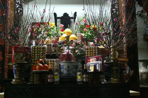 Trang trí ban thờ ngày tết. Ảnh: Văn Hải