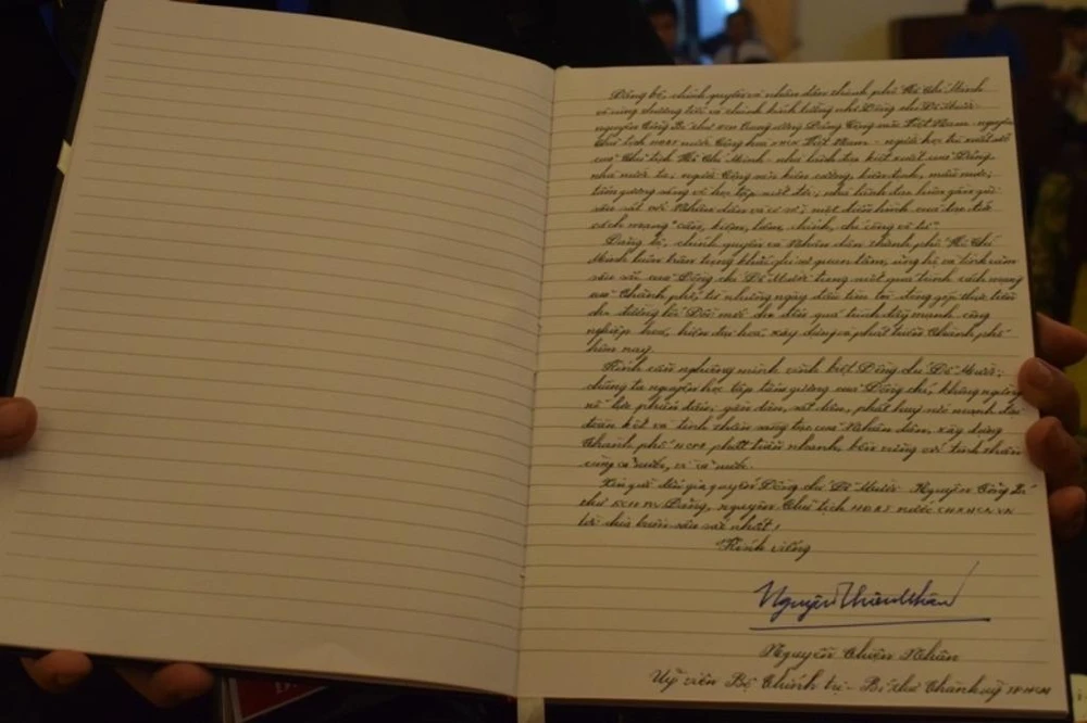 “Kính cẩn nghiêng mình vĩnh việt đồng chí Đỗ Mười, chúng ta nguyện học tập tấm gương của đồng chí, không ngừng nỗ lực phấn đấu, gần dân, sát dân, phát huy sức mạnh đại đoàn kết và tinh thần sáng tạo của nhân dân, xây dựng TP.HCM phát triển nhanh, bền vững với tinh thần cùng cả nước, vì cả nước.