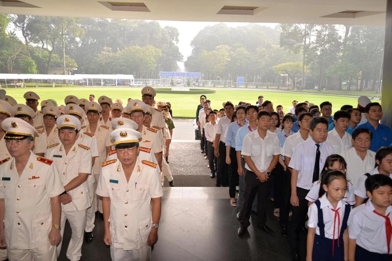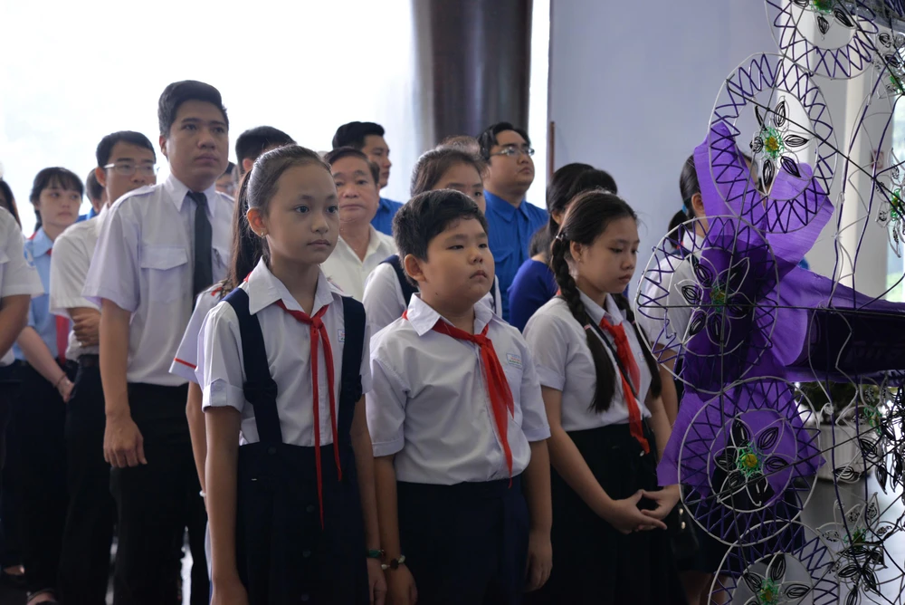 Cũng trong sáng 6-10, nhiều đoàn đại diện các cơ quan trung ương đóng tại TP.HCM, đoàn đại biểu các tỉnh, thành phố tiếp tục vào viếng.
