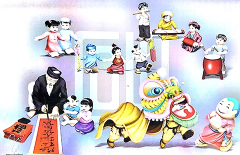 Tác phẩm “hình thức thể hiện tranh tết dân gian” của họa sĩ Lộc. Ảnh: L.TRINH