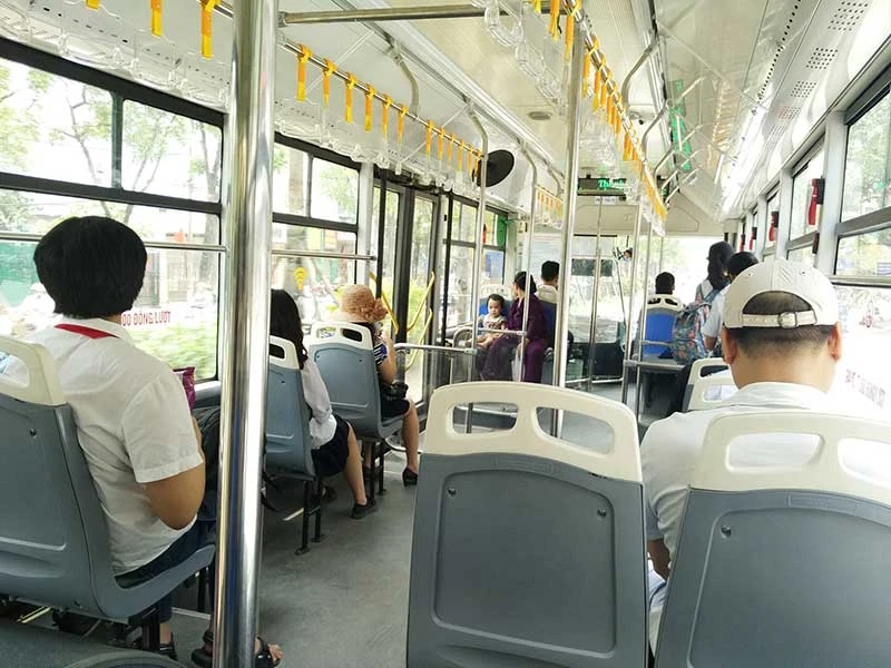 Hành khách đi xe buýt nhanh đạt 42,4 hành khách/lượt xe 90 chỗ. Ảnh: TRỌNG PHÚ