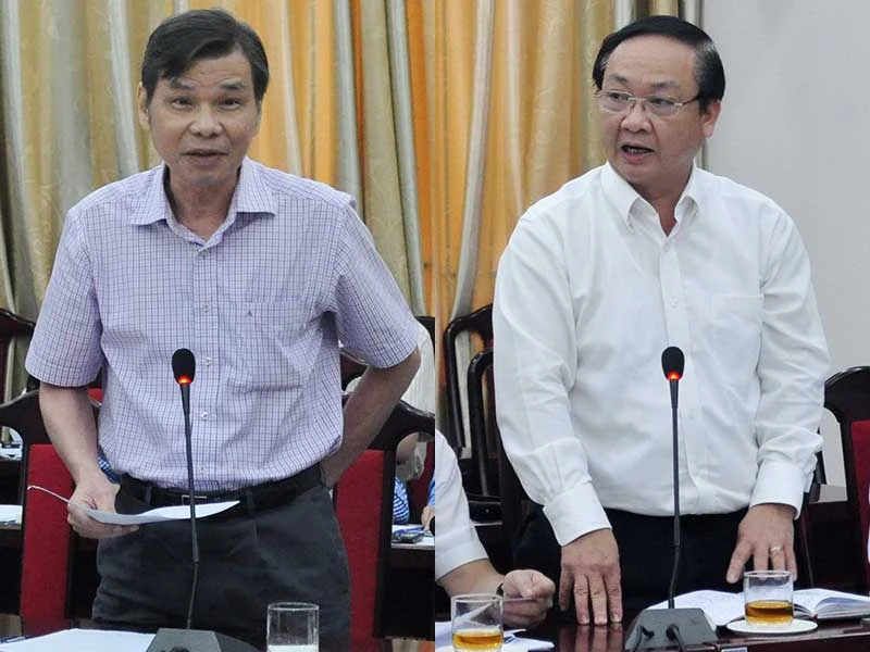 Ông Ngô Anh Tuấn (trái), nguyên Giám đốc Sở QH-KT TP Hà Nội: “Lộ trình dừng hoạt động xe máy tại nội thành vào năm 2030 là quá nóng vội”. Phó Chủ tịch UBND TP Hà Nội Nguyễn Thế Hùng: “Chúng ta làm việc này để nâng cao chất lượng cuộc sống người dân thủ đô”. Ảnh: TRỌNG PHÚ