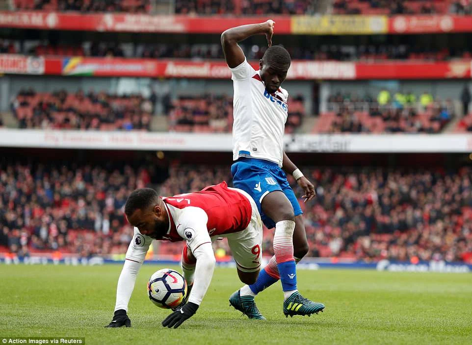 Lúc này, trọng tài chính lại thổi còi chỉ tay vào chấm 11m cho Arsenal trong sự ngỡ ngàng của Badou Ndiaye lẫn các cầu thủ Stoke City.