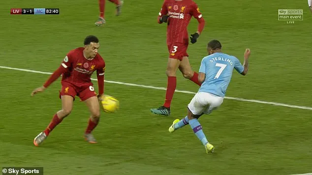 Còn tình huống đầu tiên, Fabinho có pha dứt điểm ngoài vòng cấm mở tỉ số cho Liverpool ở phút thứ 6. Trong pha bóng này, bóng đi sượt tay Alexander-Arnold bay vào lưới nhưng trọng tài vẫn công nhận bàn thắng mở điểm cho đội chủ nhà. Bên cạnh hai tình huống trên, Man. City còn bị từ chối phạt đền khi Sterling té ngã trong vòng cấm sau khi bị Mane đẩy từ phía sau ở phút 65.