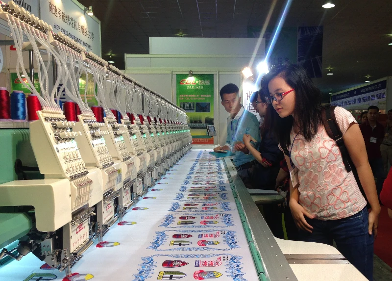 DN Việt Nam tìm hiểu máy móc thiết bị, công nghệ tại một triển lãm dệt may. Ảnh: Quỳnh Như