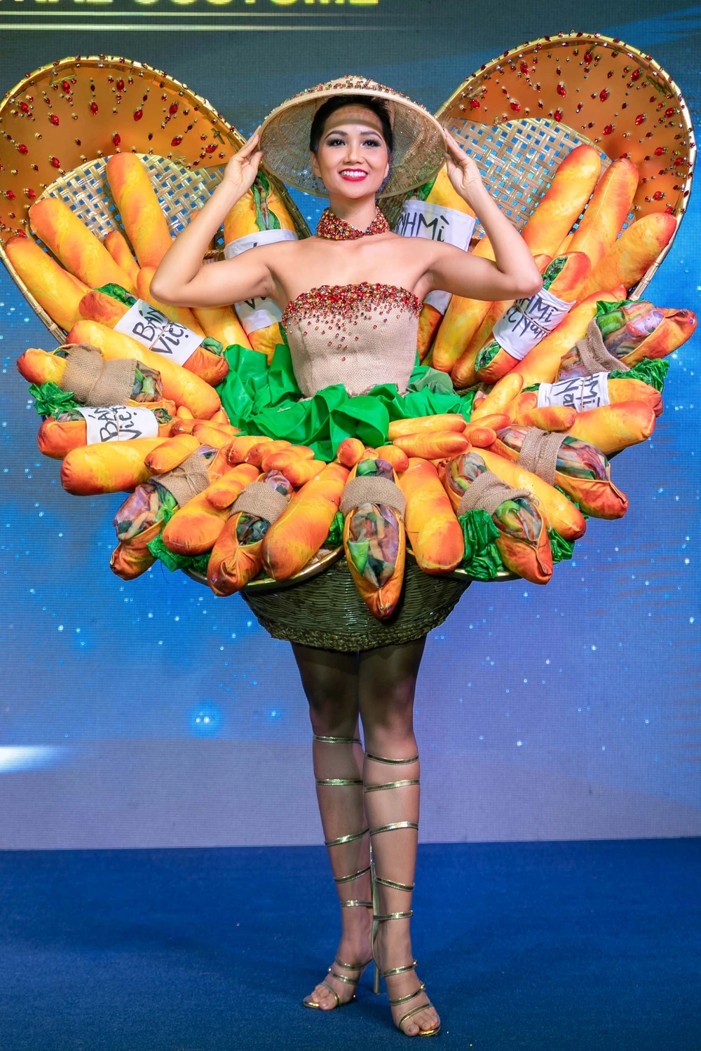 Bộ trang phục Bánh mì lạ mắt được chọn làm trang phục dân tộc của HHHV Việt Nam H'Hen Nie.