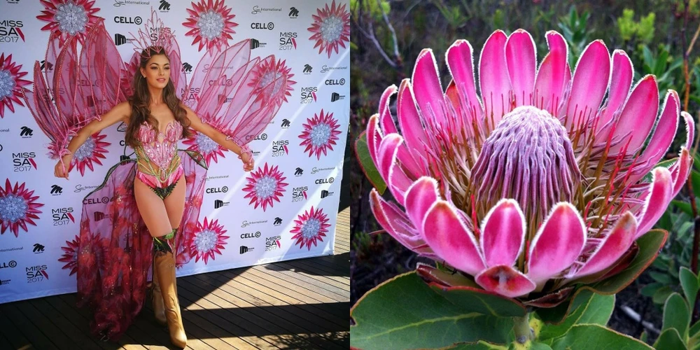 HHHV Nam Phi Demi-Leigh Nel-Petersn với bộ trang phục dân tộc phỏng theo quốc hoa Protea của xứ Nam Phi. Bộ trang phục độc đáo, rực rỡ nhưng cũng rất sang trọng, tinh tế và sexy. Cô là chủ nhân vương miện HHHV Thế giới 2017.